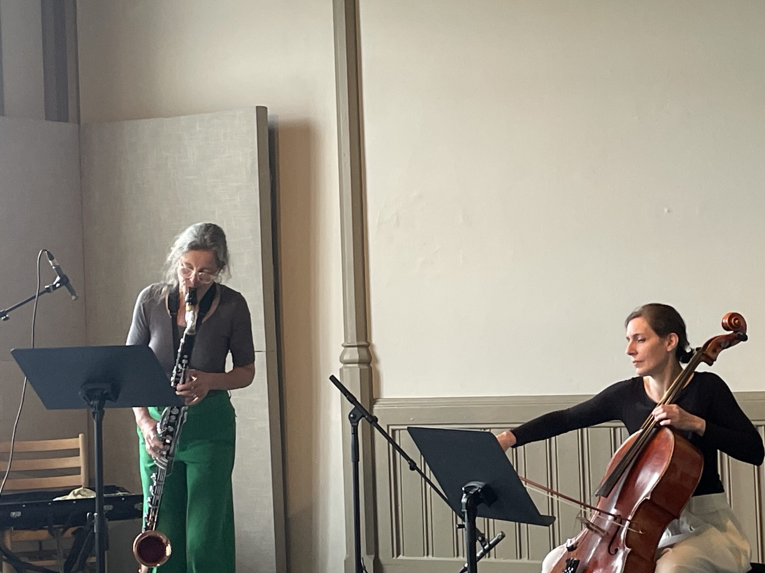 Katharina Gross introducing her project cellomondo: compositions for cello, written for Katharina, by composers all around the globe (works by Kate Moore, Seung-Won Oh, Cecilia Arditto, Erika Vega and Dugal McKinnon) & Fie Schouten introducing her instrument, the bass clarinet, and her fascination for literature as inspiration for music (new work for bass clarinet by Roberto Bonati)